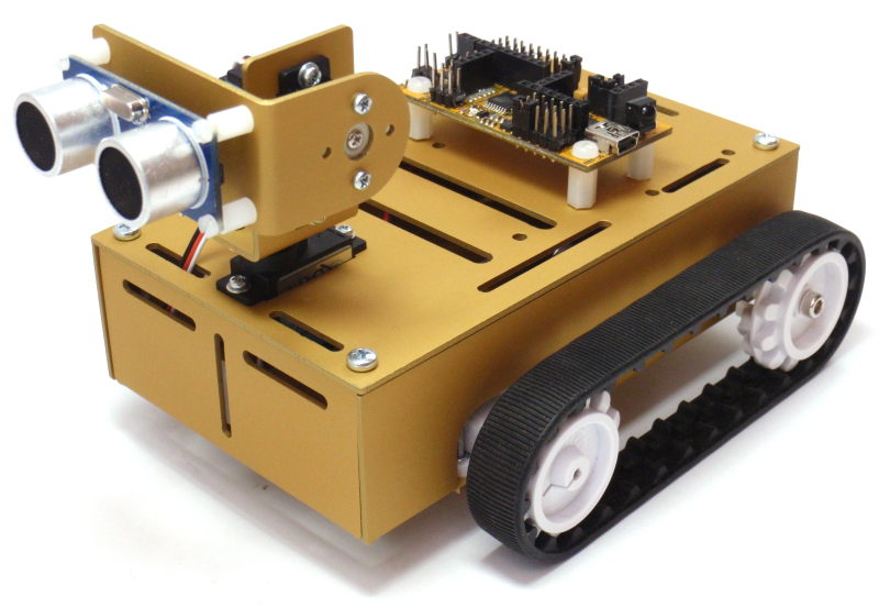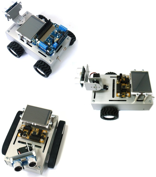 The AMRobot is intended to build an educational mobile mini-robot with the capability to choose one of the three types of drive/chassis system: two-wheeled (with a support ball), four-wheeled or tracked drive system (with two silicone tracks).