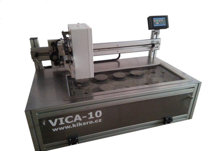 Automatický Vicatův přístroj (Vicat Apparatus) VICA-10 slouží ke zkouškám dle ČSN EN 196-3 pro stanovení dob tuhnutí cementu a cementových směsí. Sestává se z deseti nezávislých pozic (prstenců), lze tedy použít až pro deset souběžných a vzájemně nezávislých měření. Běh zařízení je plně automatický, pro nastavování parametrů zkoušky a načtení uložených měření je vybaveno rozhraním Ethernet RJ-45 pro připojení k PC. Zařízení lze modifikovat dle přání zákazníka pro zkoušení i jiných směsí, včetně jiných postupů.