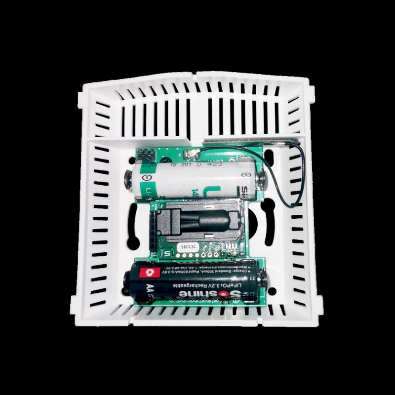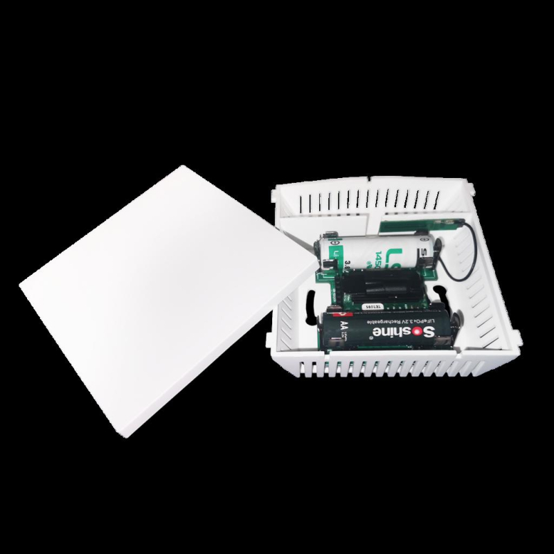 Interiérový senzor ve velmi kvalitním provedení z plastu ABB ve vysokém lesku, který měří environmentální veličiny jako je teplota, vlhkost vzduch a CO2. Lze dodat libovolné modifikace v kombinaci s výše uvedenými veličinami a navíc s měřením atmosférického tlaku. Zařízení je bateriově napájeno a dle intenzity měření může být jeho výdrž až 2 roky. Jsou dostupné varianty NBIoT, LoRaWAN a Sigfox.