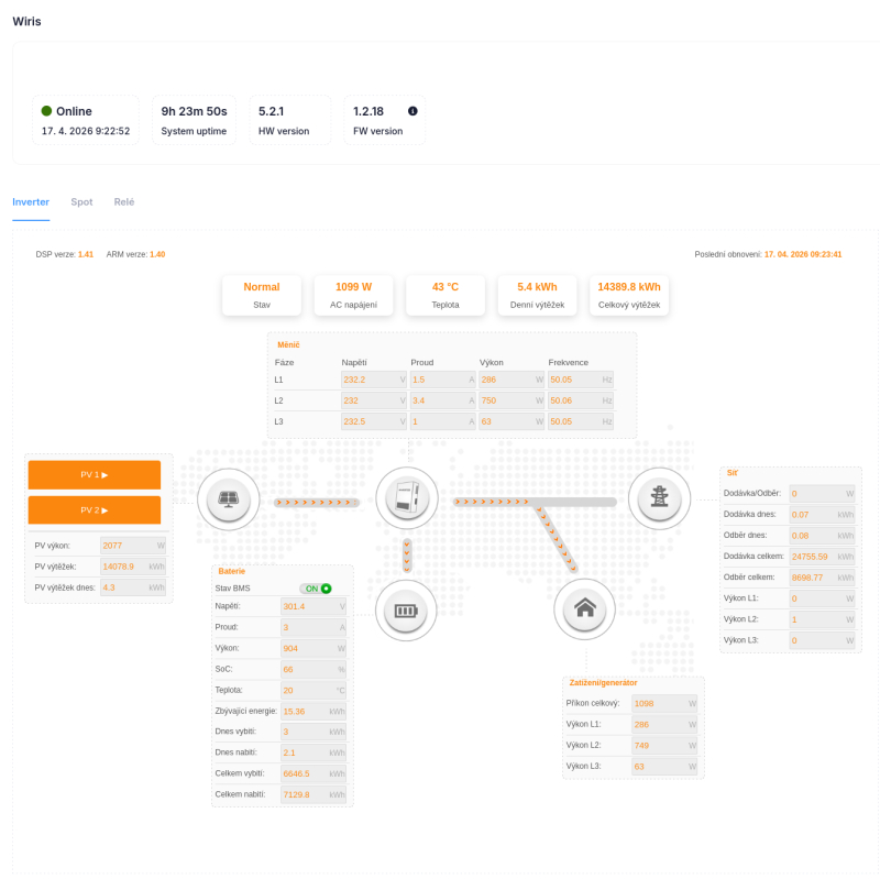Zařízení pro optimalizaci výroby a monitoring FVE. Zařízení zajišťuje spínání zátěží na základě výroby FVE(ohřev vody, tepelné čerpadlo, klimatizace a další). Poté řídí SPOTové obchodování. Blokuje v případě záporných cen, vybíjí/nabíjí baterie v případě výhodných cen a tím zkracuje návratnost FVE. Vše je uživatelsky konfigurovatelné přes web. Kompatibilní se střídači Solax. On-line monitoring střídače(5s) na českém serveru.
