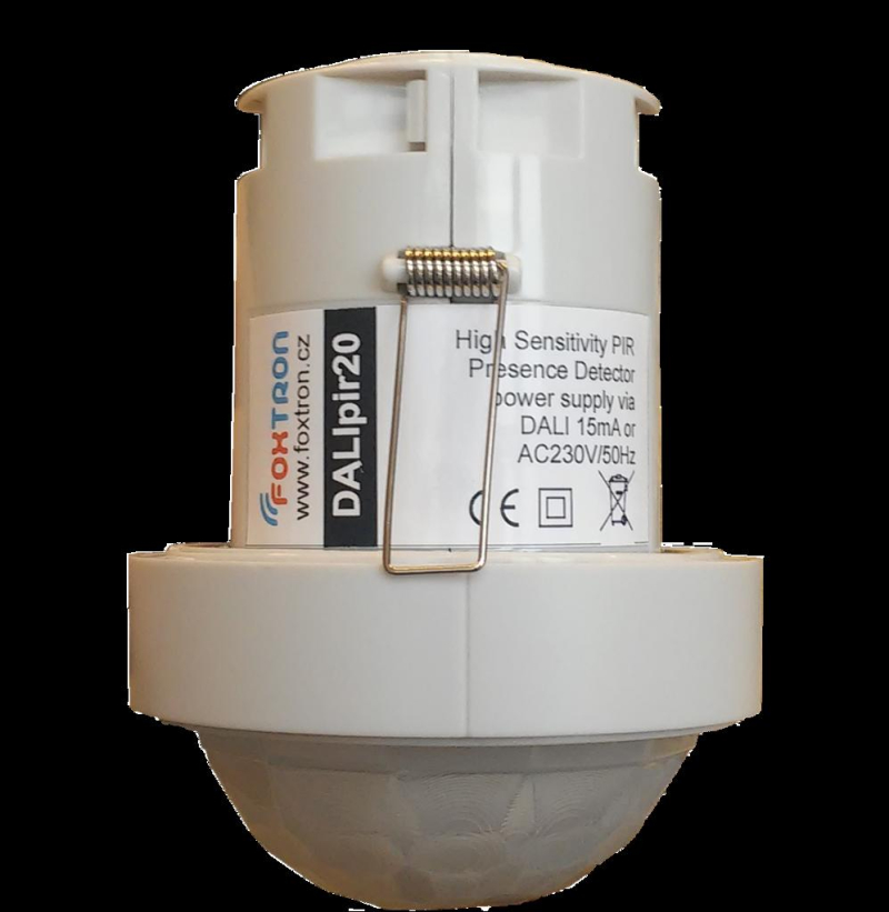 DALIpir is multisensor for the DALI bus. It can regulate to constant lux level depending on the presence in the sensing area. Adjustable Presence Value, Absence Value, Run-on time, Fade times, Switch-off delay and Dead time. Installation hight is up to 20 meters. Sensing area can be modified with adjustable cover.