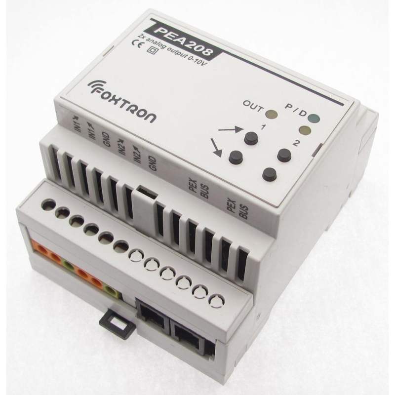 PEA208 is two channel analog outputs 0-10V unit of Power Express (PEX) system. Differenciation of outputs is 10 bits.