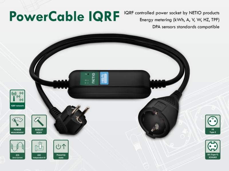 NETIO PowerCable IQRF 901x, a smart wireless power socket for lightweight industrial applications, is an ideal solution for remote control and metering of 230V power sockets outside electrical cabinets.