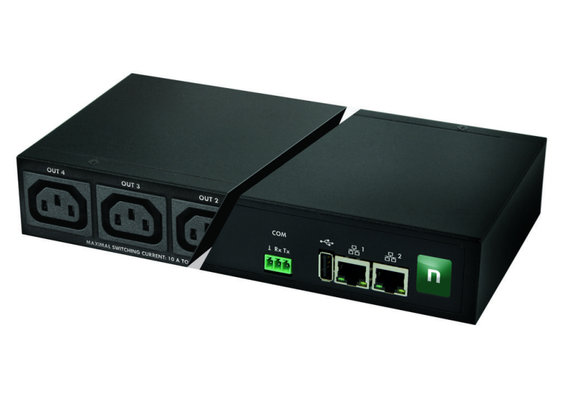 Each of the four power outlets (IEC sockets) can be switched on/off with a button at the device or from the device’s web interface. The manufacturer provides a mobile app; however, the open API also allows the use of recommended third-party apps.