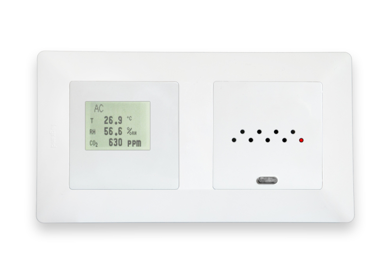 Measurement of temperature, humidity and CO2 concentration in interior applications.