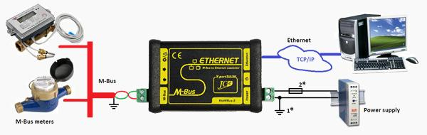 Remote communication with M-Bus meters using the Ethernet network in industry and building automation. The converter works as a transparent gateway for the transmission of M-Bus messages using TCP or UDP Ethernet protocols.