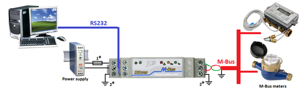 The RS232toMBus-4SL converter provides a RS232 to M-Bus interface conversion. There is no change in the content of the messages or communication speed during the conversion. The maximum number of M-Bus slave devices that can be connected is four.