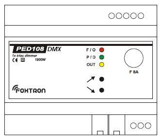 PED108DMX is used for dimming resistive or inductive (transformer reset to zero) load from DMX bus.