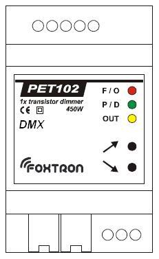 PET102 is used for dimming resistive or inductive (wound transformers) load from DMX bus.