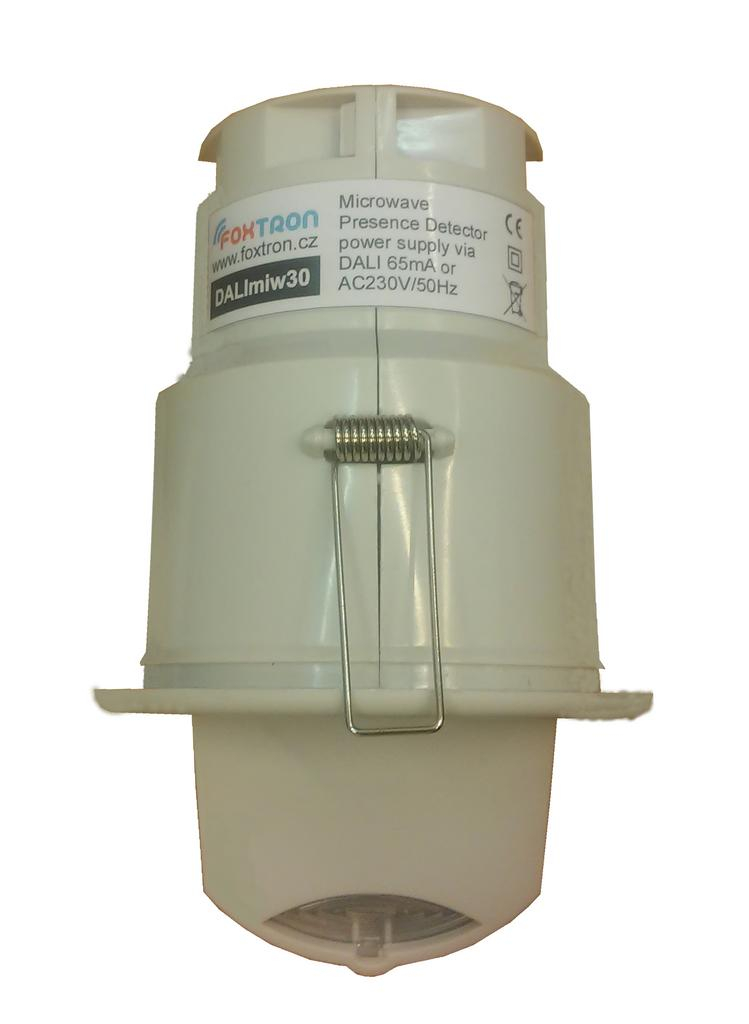 DALImiw30 is combined sensor operating on DALI bus. It can regulate to ambient light control according to the motion in the sensed area. Range of sensor is adjustable by positioning head (up to 30 meters). It is possible to control the sensor using standard DALI messages.