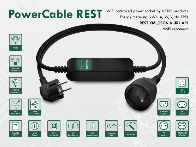 NETIO PowerCable REST 101x, a smart WiFi power socket for IT applications, is an ideal solution for remote control and metering of 230V power sockets outside electrical cabinets.