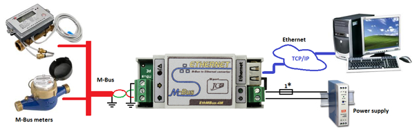 Vzdialená komunikácia s M-Bus meračmi prostredníctvom počítačovej siete Ethernet v priemysle, automatizácii budov. Prevodník funguje ako transparentná brána pre prenos M-Bus správ pomocou Ethernetových protokolov TCP alebo UDP.