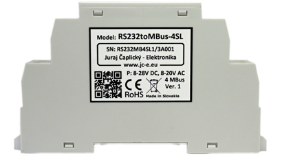Prevodník RS232toMBus-4SL zabezpečuje konverziu sériovej linky RS232 na rozhranie M-Bus. Pri konverzii nedochádza k žiadnym zmenám obsahu správ ani komunikačnej rýchlosti. Maximálny počet pripojiteľných M-Bus slave zriadení sú štyri.