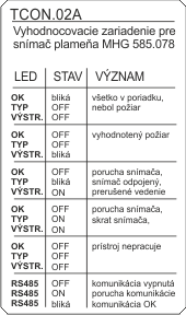 Signalizačné led na čelnom paneli ohlasujú stav OK, porucha snímača, prerušené vedenie, odpojenie snímača, skrat snímača, komunikáciu.
